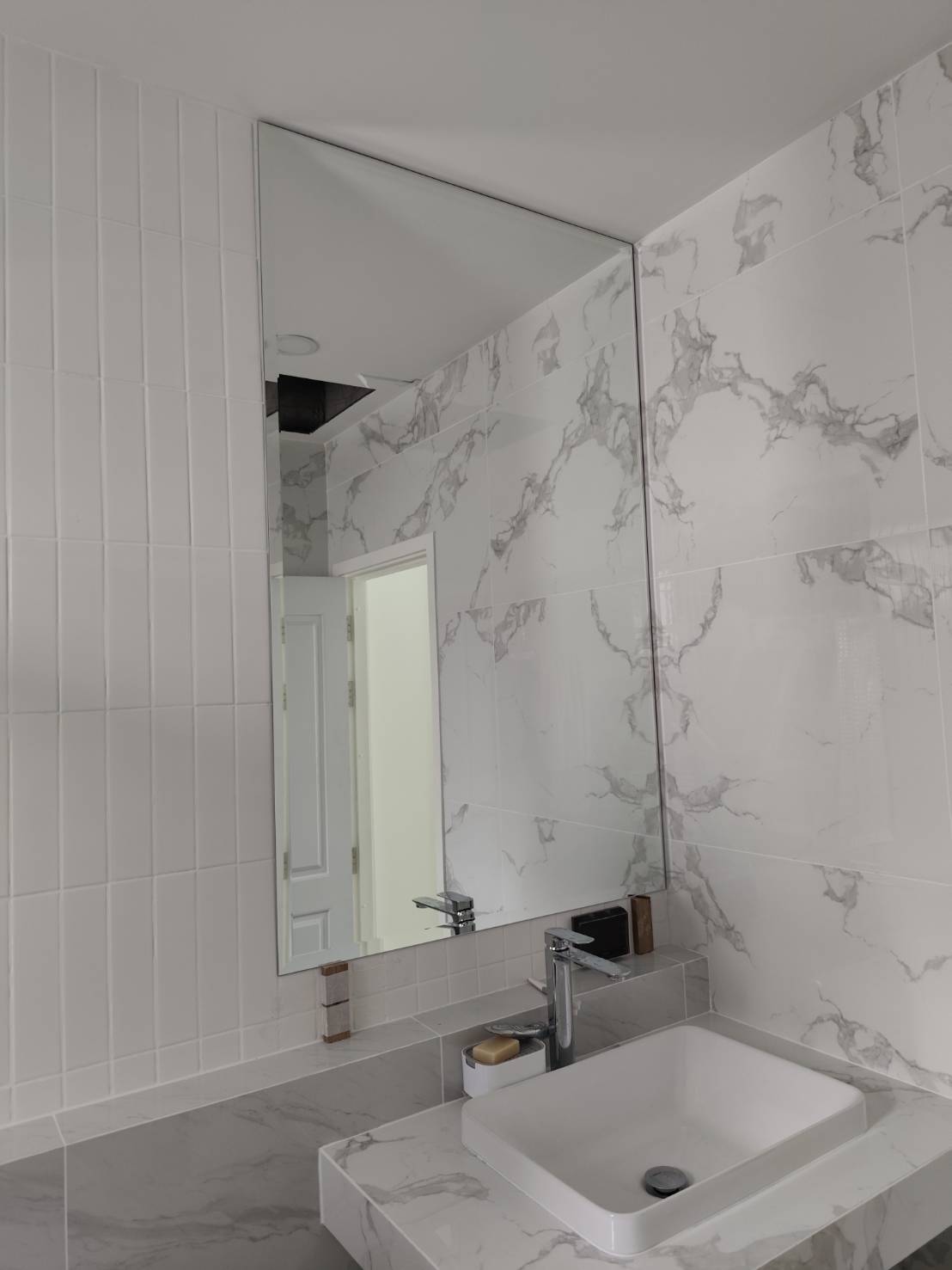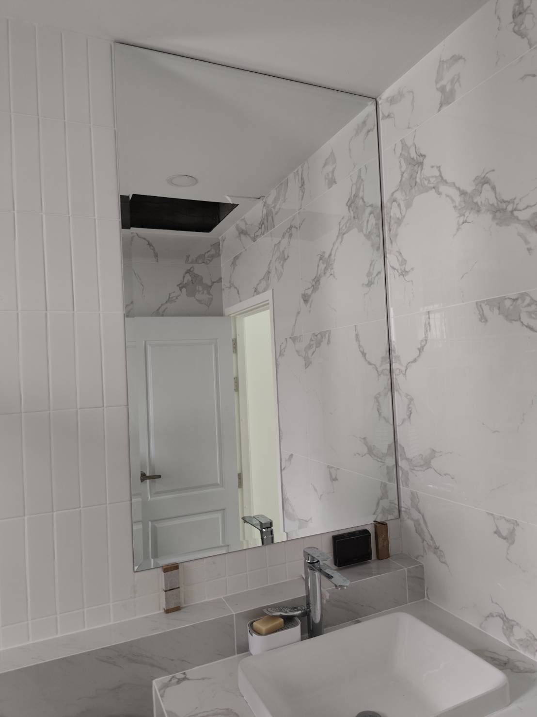 กระจกเงาบ้านอาคารคอนโดและผนังห้องน้ำ